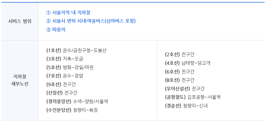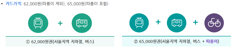 ● 서울지역 지하철, 버스, 따릉이까지 이용: 65,000원