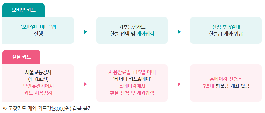 ● 환불대상금액: 기후동행카드 충전 가격에서 누적 이용요금 및 수수료 제외