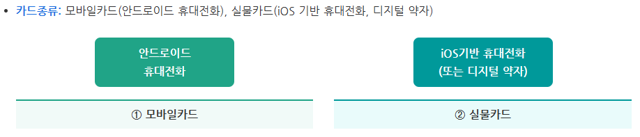 ● 모바일카드와 실물카드는 별도이므로 실물카드를 사서 모바일에 등록하더라도 모바일카드로 연동되지 않음