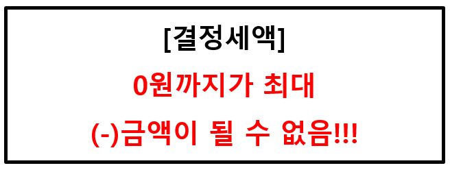 연말정산 결정세액은 0원까지가 최하라는 것을 알아두셔야 합니다. 이를 모르고 월세세액공제가 왜 안되었지?라고 묻는다면 월세세액공제 전에 결정세액이 이미 0원이라 더 이상 공제할 세액이 없기 때문입니다!!!