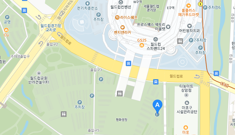 서울월드컵경기장 대각선으로 맞은편에 위치해 있습니다.