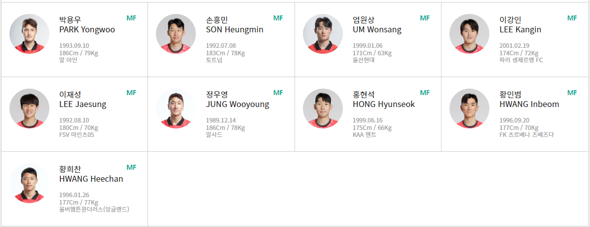 2. 북중미 월드컵 예선 싱가포르, 중국전 선수 라인업