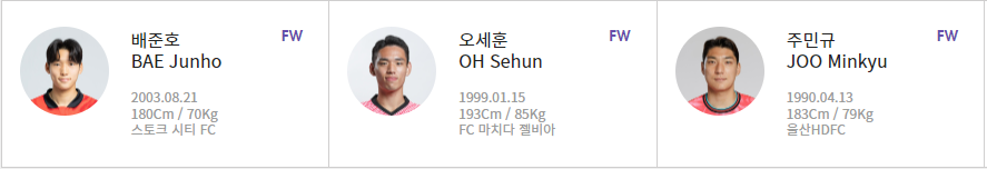 설영우 선수 또한 어깨수술 후 재활치료 중으로 일찌감치 대표팀에서 제외되었습니다.